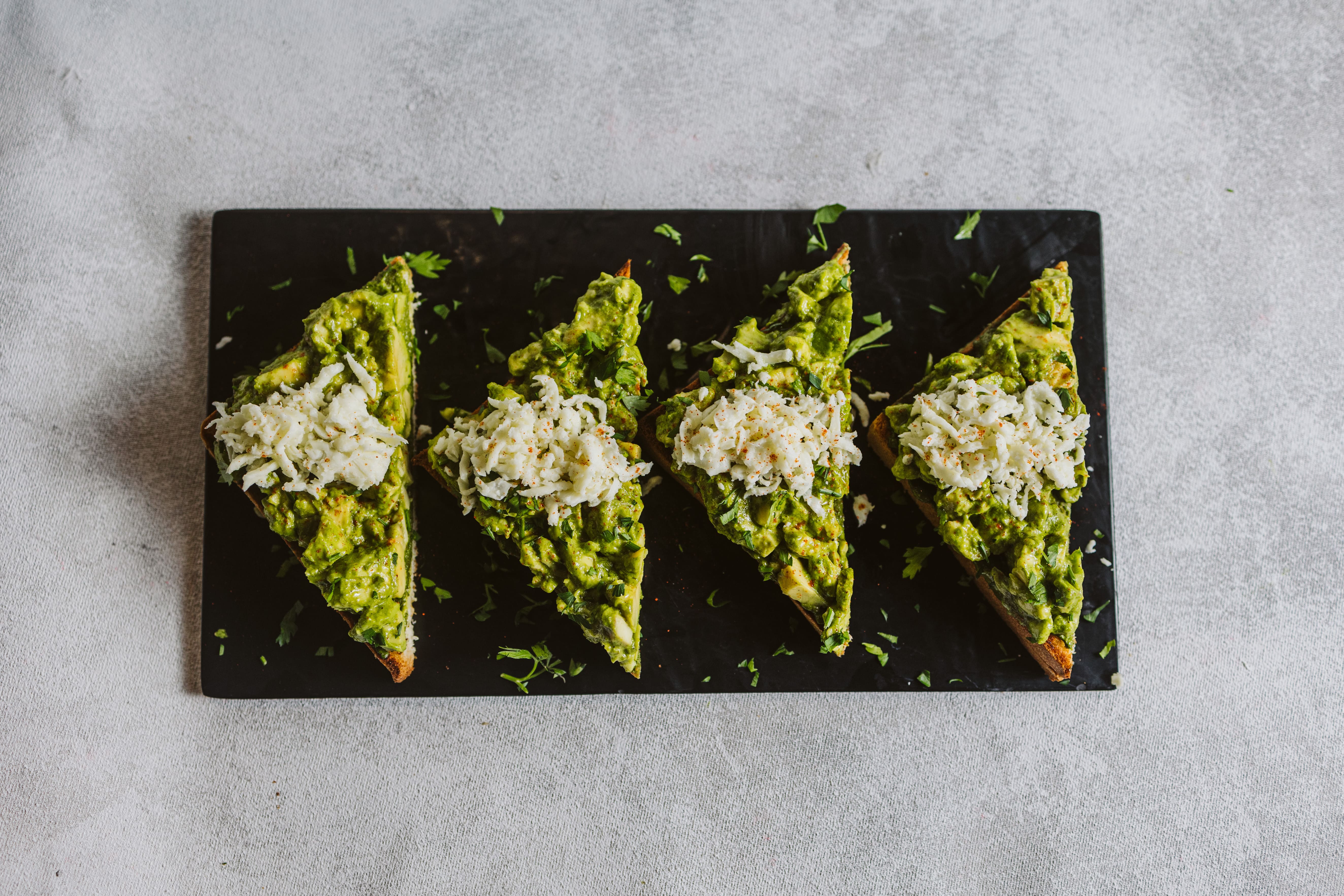 Golden toasted bread topped with roasted beef & Cheese, Egg & Cheese, or Egg & Avocado.